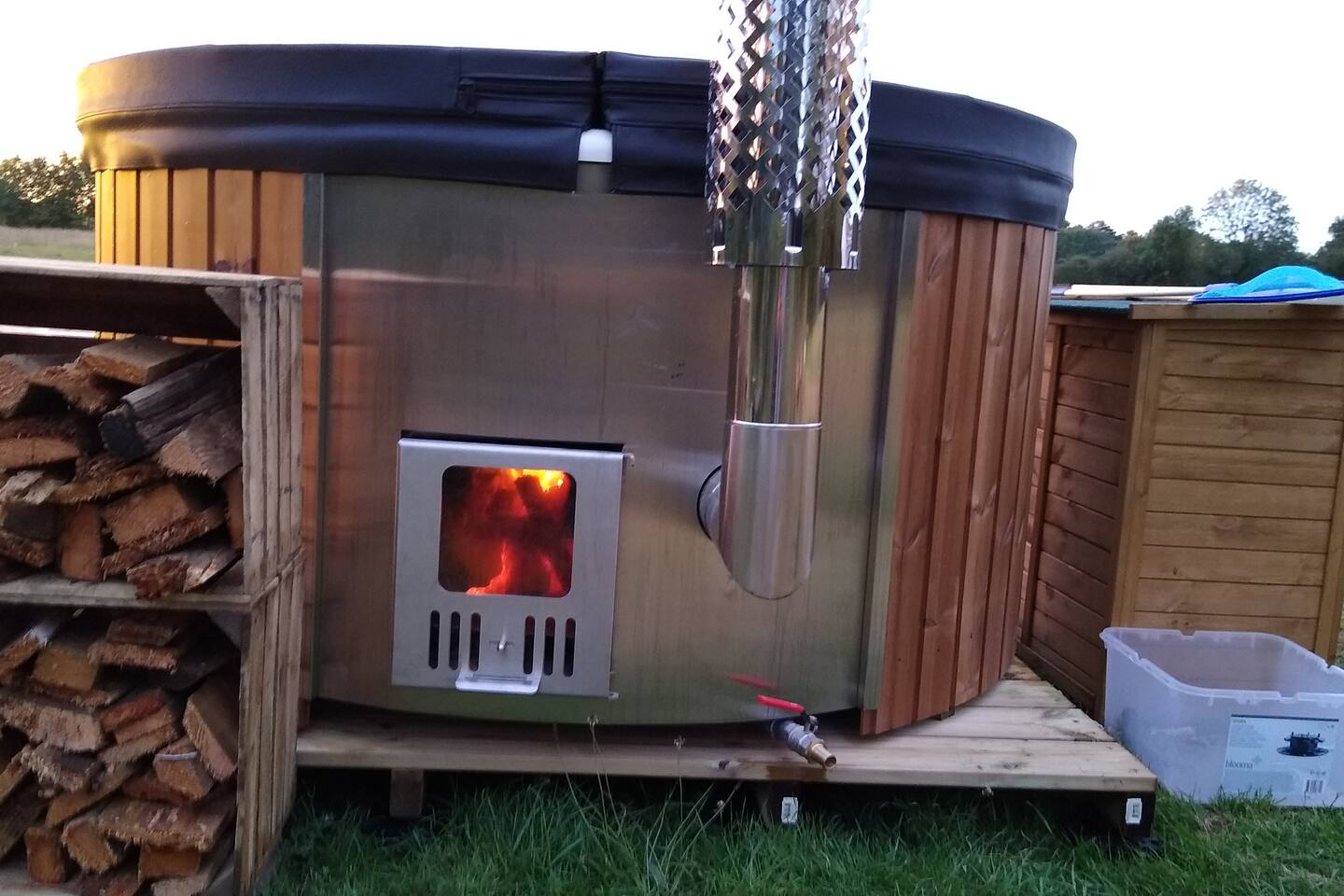 The double sofa bed in the living room/kitchen pulls out, and doesn't leave much space to get around. We use natural bedding and cushions, and are unable to provide alternatives - you are welcome to bring your own if required. The outside areas are shared with our family and other guests, there are lots of spaces you can use, but depending on the season and weather conditions some may not be available - please ask if you would like to make use of anything and we will always do our best to accommodate. We are a working smallholding and busy family home, we try very hard to keep everything looking at it's best, but ask for your patience if we fall short - just let us know and we will make every effort to fix it for you. We welcome well behaved dogs that are not allowed onto furniture. If your dog leaves excess hair you can use our vacuum cleaner. We have chickens, cats and children as well as other dogs belonging to friends and guests so it is important that your dog can cope with this. Dogs must be kept on lead in the garden and field areas. The bridge crossing to the hot tub and field has no railings and a steep drop into water, great care should taken when crossing and children should be carefully supervised. The field should be considered a working farm area; working tractors and livestock maybe present - it is essential that all animals and children are closely supervised. Our wood-fired hot tub is available to book for just £30 an hour for private sessions with full cleans in between.