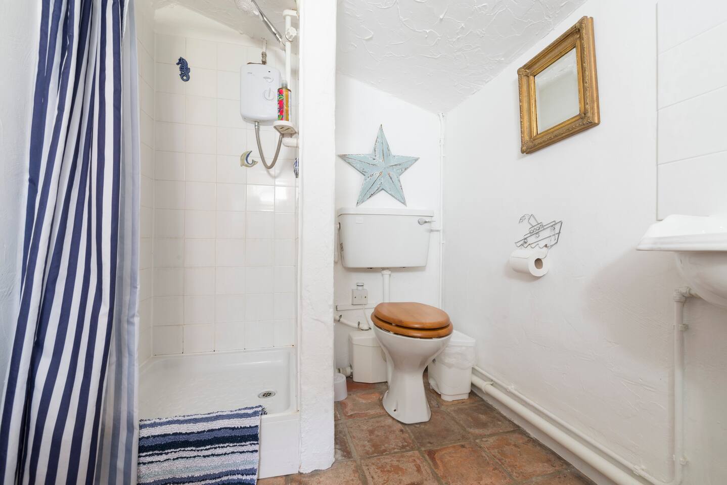 The shower room has a low ceiling and doorway so might not be the ideal choice for those of you who are a bit taller. We use natural bedding and cushions, and are unable to provide alternatives - you are welcome to bring your own if required. The outside areas are shared with our family and other guests, there are lots of spaces you can use, but depending on the season and weather conditions some may not be available - please ask if you would like to make use of anything and we will always do our best to accommodate. We are a working smallholding and busy family home, we try very hard to keep everything looking at it's best, but ask for your patience if we fall short - just let us know and we will make every effort to fix it for you. We welcome well behaved dogs that are not allowed onto furniture. If your dog leaves excess hair you can use our vacuum cleaner. We have chickens, cats and children as well as other dogs belonging to friends and guests so it is important that your dog can cope with this. Dogs must be kept on lead in the garden and field areas. The bridge crossing to the hot tub and field has no railings and a steep drop into water, great care should taken when crossing and children should be carefully supervised. The field should be considered a working farm area; working tractors and livestock maybe present - it is essential that all animals and children are closely supervised. Our wood-fired hot tub is available to book for just £30 an hour for private sessions with full cleans in between.